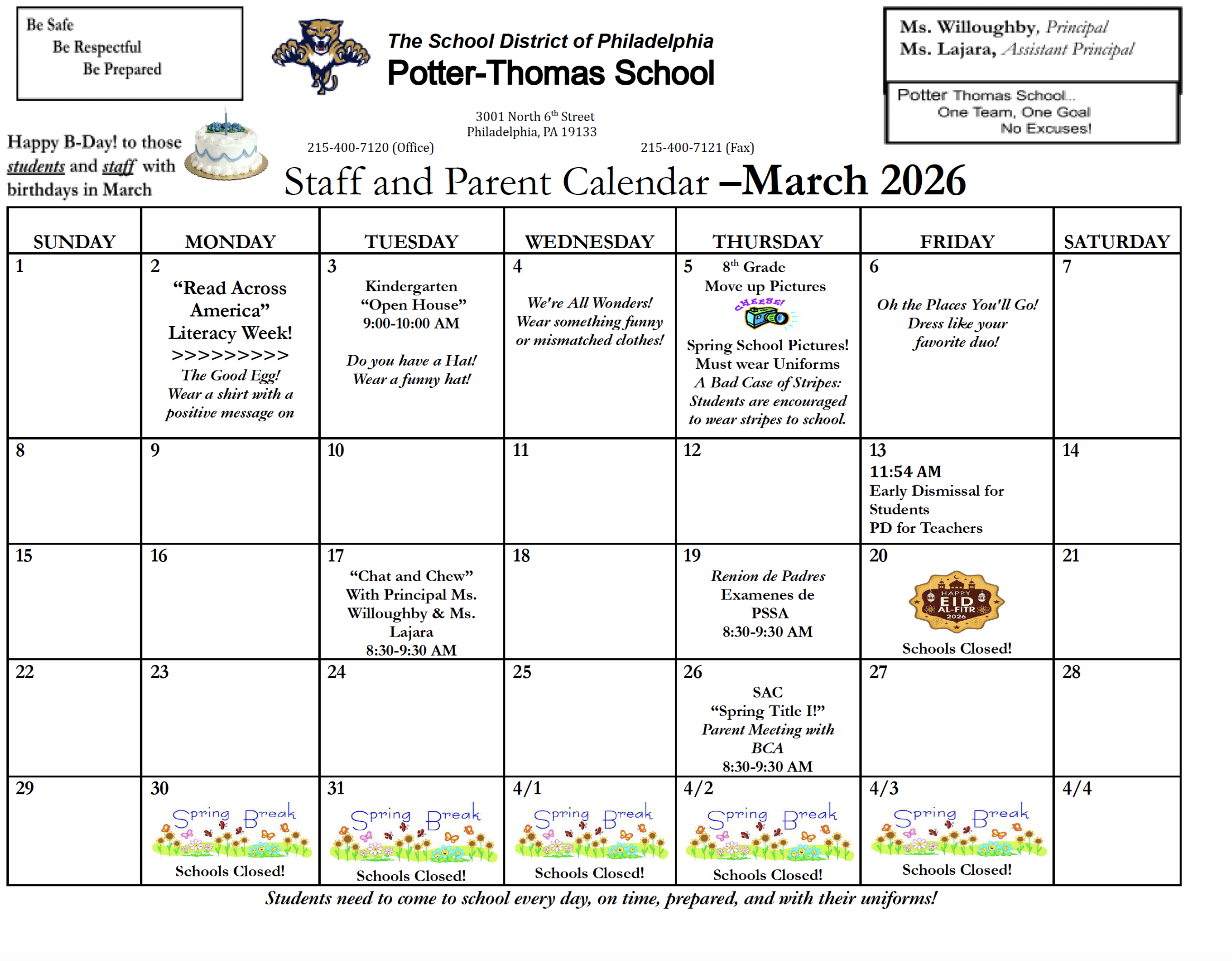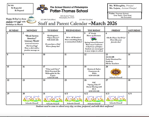 At Potter-Thomas School, students and staff feel SAFE, LOVED and are always LEARNING. We hold each other accountable and embrace the “Power of YET” as we build upon our skills to achieve academic success. We vow to collaboratively dismantle racial inequities to ensure ALL students have access to a liberatory education.